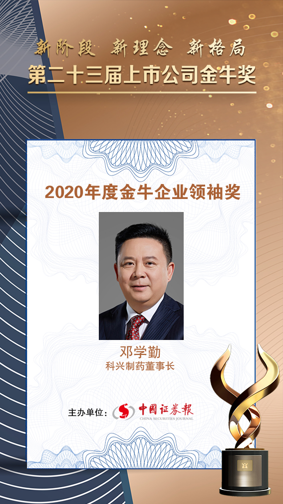 在本屆上市公司金牛獎(jiǎng)評(píng)選中,科興制藥董事長(zhǎng)鄧學(xué)勤獲得金牛企業(yè)領(lǐng)袖獎(jiǎng)。根據(jù)評(píng)選標(biāo)準(zhǔn),本屆金牛領(lǐng)袖獎(jiǎng)?lì)C發(fā)對(duì)象是具有崇高的價(jià)值追求、出類拔萃的素養(yǎng)、卓越的領(lǐng)導(dǎo)才能,能在復(fù)雜的環(huán)境中帶領(lǐng)企業(yè)取得巨大成就,并享有行業(yè)美譽(yù)度的企業(yè)領(lǐng)軍人物。
