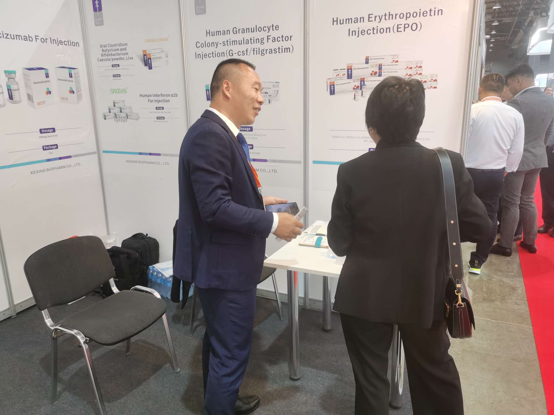 在本次展會上,科興制藥攜人促紅素EPOSINO、人粒細(xì)胞刺激因子WHITE-C、貝伐珠單抗ARKETIN、英夫利西單抗Reminton、白蛋白紫杉醇、阿達(dá)木單抗Ahrasin、利拉魯肽等多款出海產(chǎn)品亮相,吸引了眾多海外客戶前來展臺咨詢,共接待50余家醫(yī)藥企業(yè),收獲頗豐。同時,通過展會橋梁,與客戶面對面交流市場前沿信息,極大增強(qiáng)了客戶與科興制藥的合作信心,進(jìn)一步鞏固科興制藥在國際醫(yī)藥供應(yīng)鏈體系中的優(yōu)勢地位。